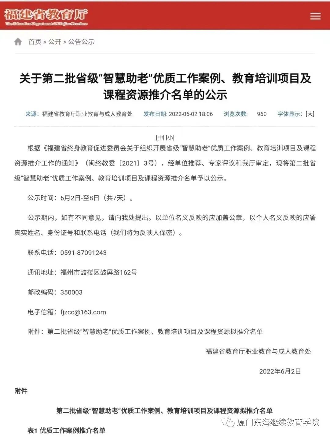 喜报〡继教院申报的两项目入选福建省教育厅“智慧助老”推介名单