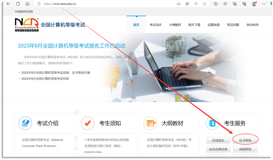 请考生打开中国教育考试网:https://ncre.neea.edu.cn/