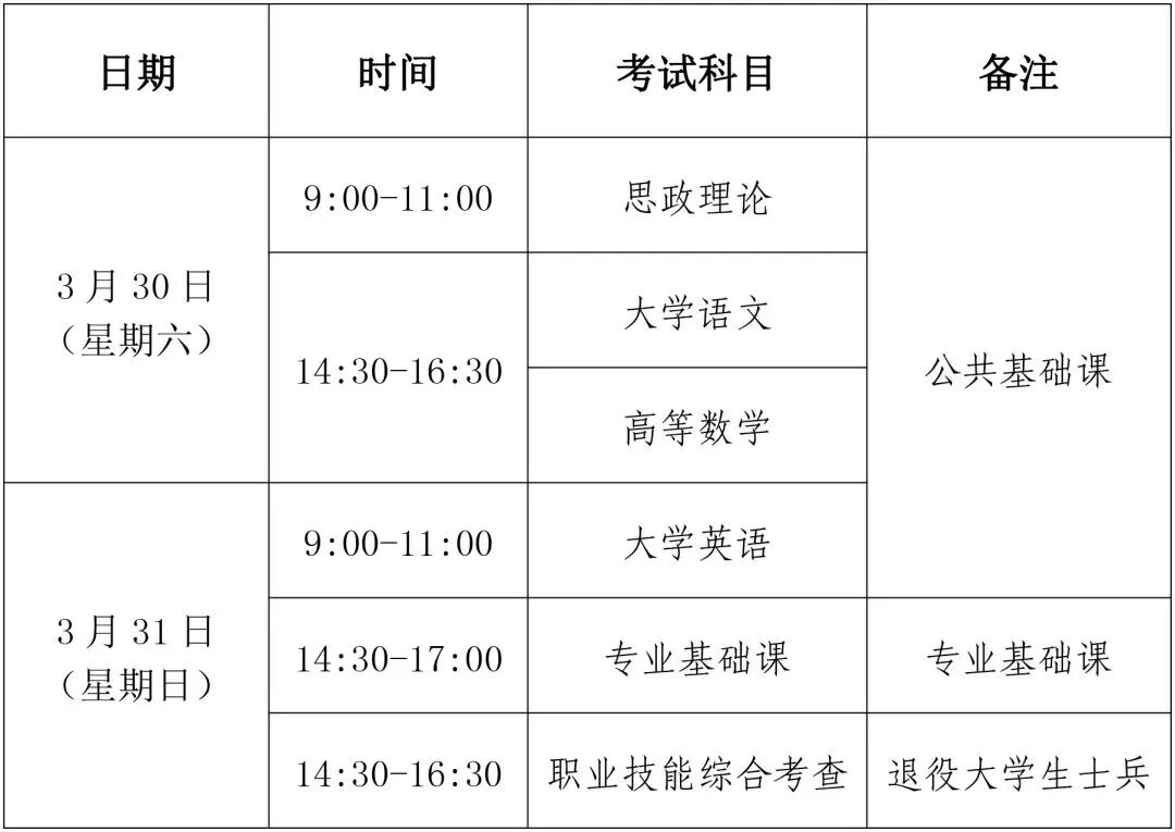 退役大学生士兵考生(含选择本类型的获奖考生)免于参加文化课考试,须参加由招生院校根据专业人才培养要求联合命题的职业技能综合考查,考查考生所报类别的专业基础课技能掌握情况,成绩满分150分,采用笔试形式进行