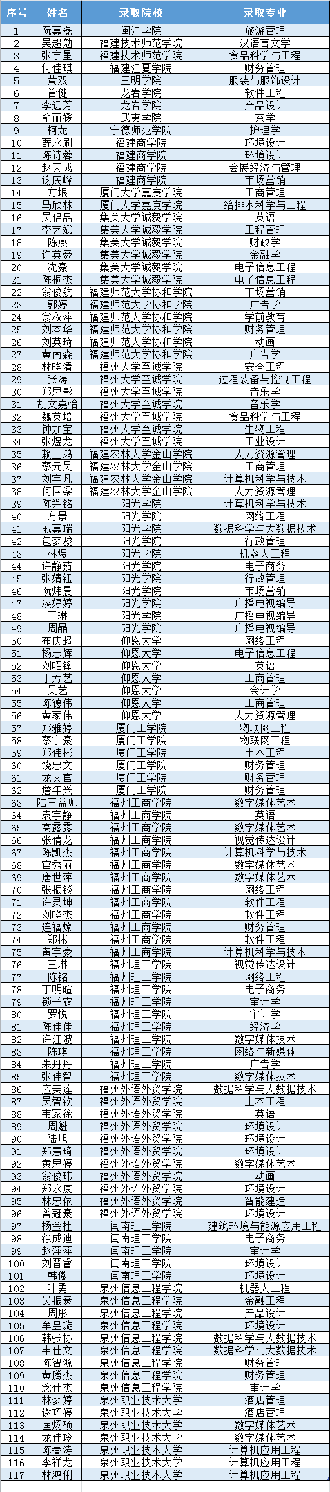 在2024年福建省普通高校专升本统一招生考试中,必赢官网117名应届毕业生分别被福建省内本科院校录取。