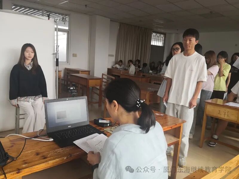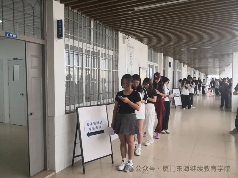 测试区域分为候考室、信息采集室和考试室三个部分,考生报到和候考秩序井然,严格遵照《普通话水平测试实施纲要》《普通话水平测试等级标准》等要求实施,考生根据考务人员的引导按照“考生签到—证件核对—信息采集—候考—考试—签退”的测试流程,平稳有序完成测试。