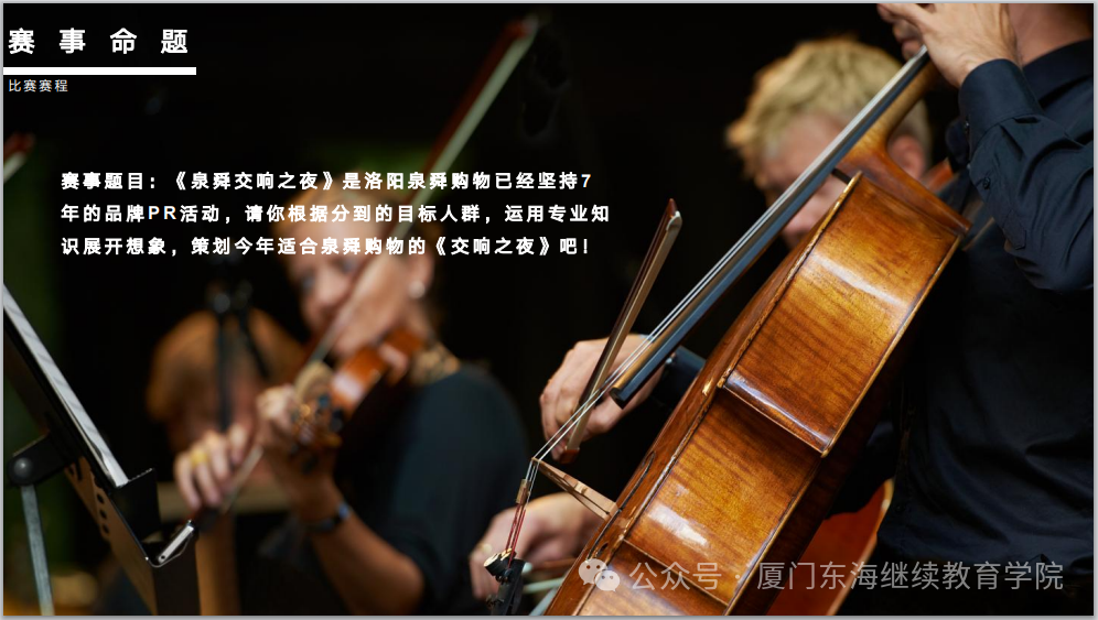 《泉舜交响之夜》是洛阳泉舜购物已经坚持7年的品牌PR活动,请你根据分到的目标人群,运用专业知识展开想象,策划今年适合泉舜购物的《交响之夜》吧!