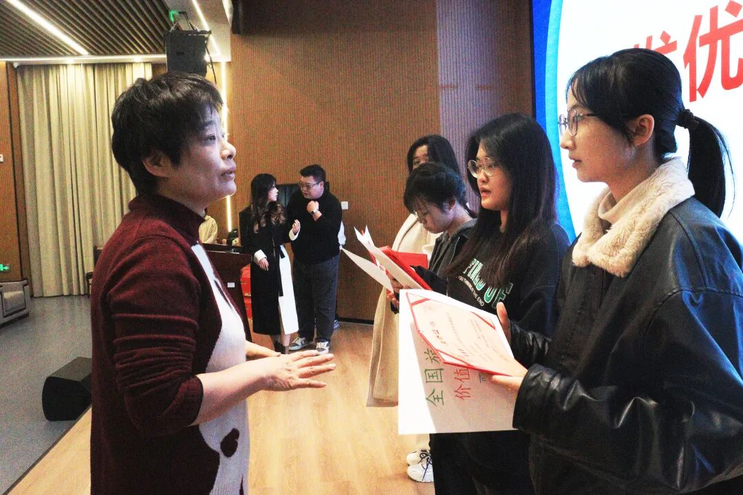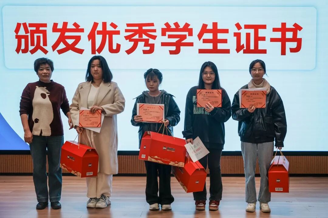 专本衔接工作负责人余老师为四位学生颁发优秀学生证书,鼓励大家积极向他们学习。