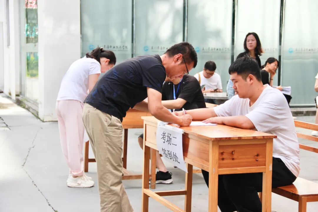 赛场入口处,选手们依次完成签到核验及安检流程。工作人员严格执行规范操作,选手有序签到后,通过安检设备细致检查随身物品,确保无违规物品入场,竞赛环节衔接紧密、高效有序。