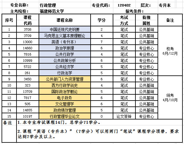 福建师范大学 | 行政管理 | 金融服务与管理 大数据与财务管理 大数据与会计 国际商务 电子商务 城市轨道交通运营管理 高尔夫球运动与管理 智慧健康养老服务与管理 | 2年 |