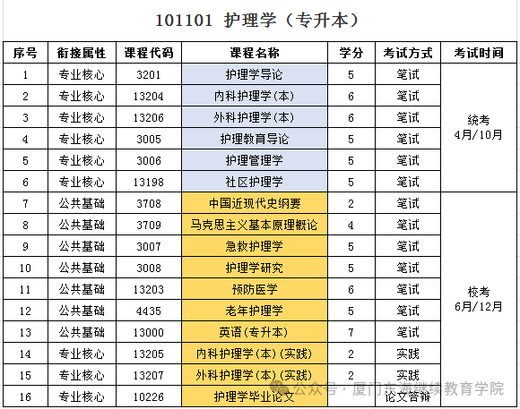 厦门医学院 | 护理学 | 护理 | 2年 |