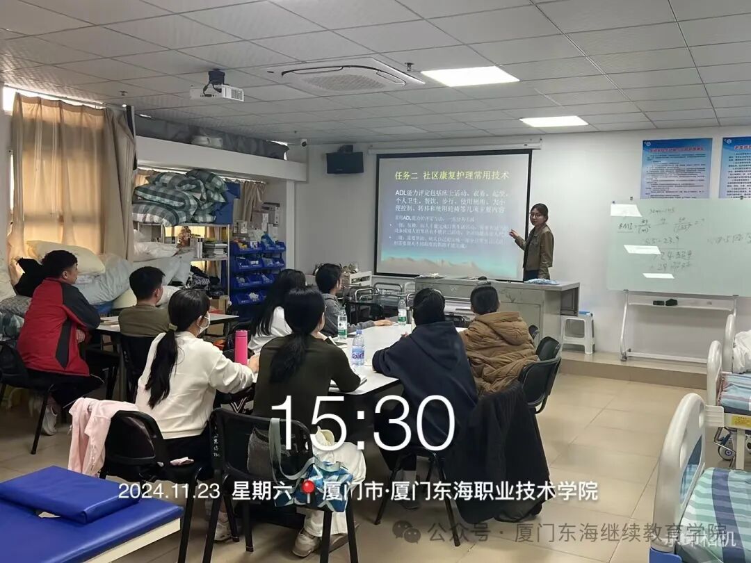 健康产业学院陈海风、曾雪莲等老师为智慧健康养老服务与管理专业的学生带来中医养生、老年社区护理、基础医学等课程的专业技能和理论知识