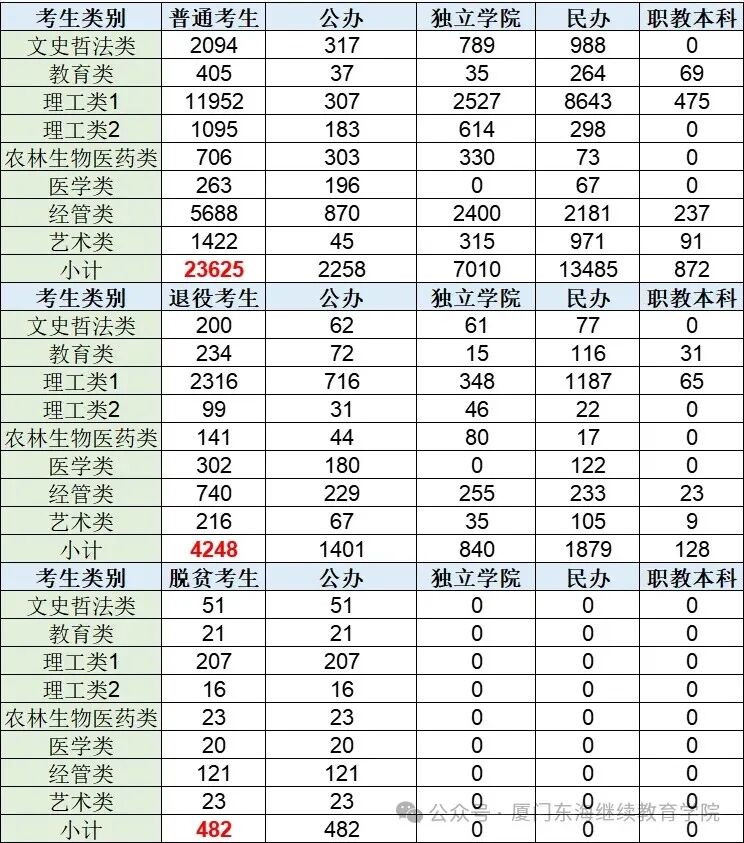 【普通考生】公办2258/独立7010/民办13485/职本872