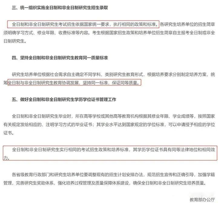 1.教育部:不得将全日制和非全日制作为限制性条件