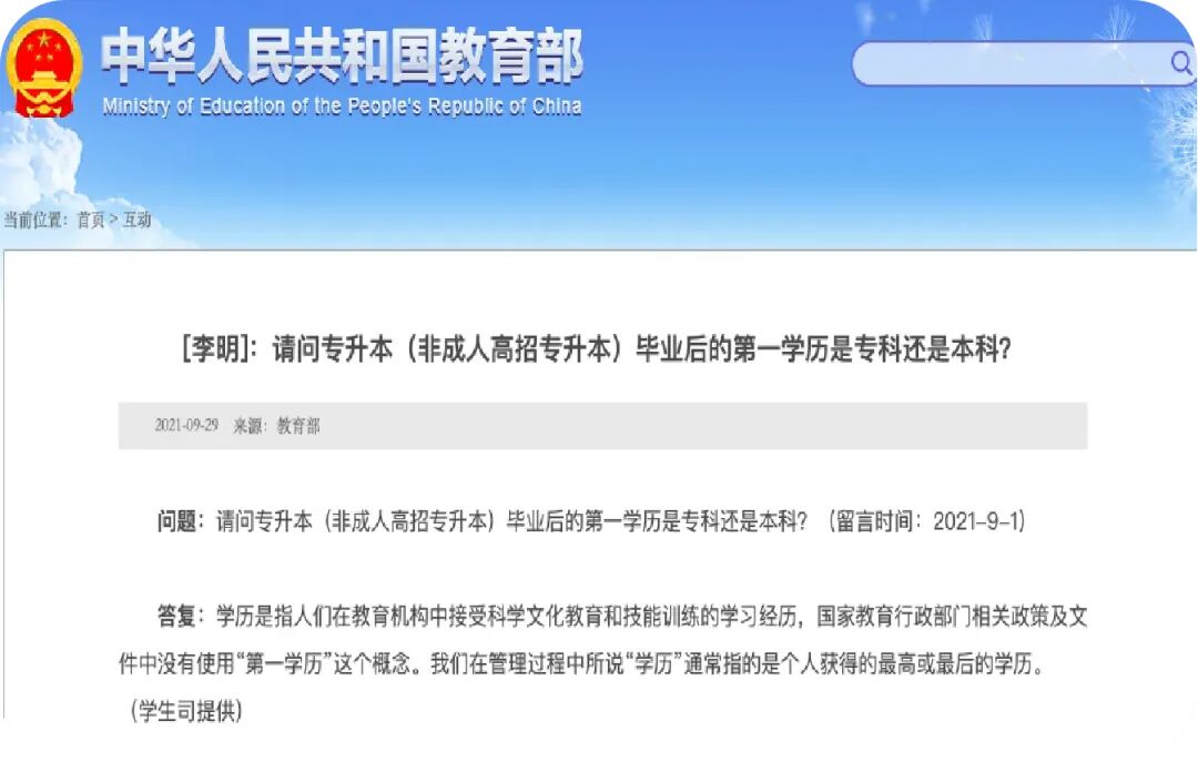 2.教育部:等同于全日制学历!全日制与自学考试同属于国民教育,不存在第一学历与第二学历的说法