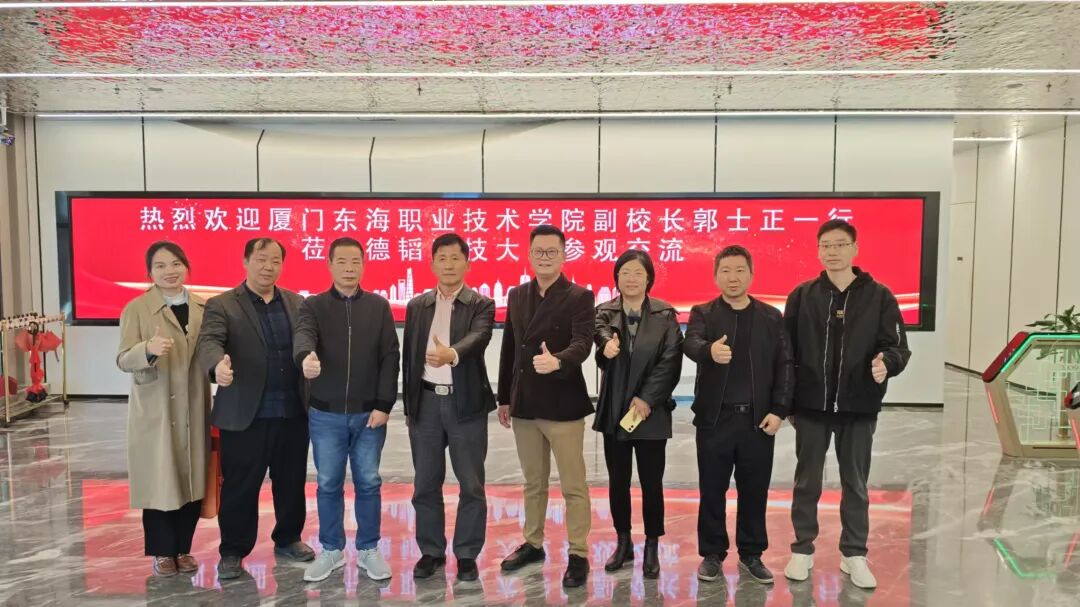陈彬彬总监带领与会嘉宾先后参观了德韬科技大厦一楼大堂、3楼科创智家展厅、8楼智小金、鲲鹭物联展厅以及24楼奋斗者学院,现场详细介绍了企业的业务范围、发展现状与未来规划等。随后双方围绕人才培养、专业共建、实习就业等主题展开深入座谈。