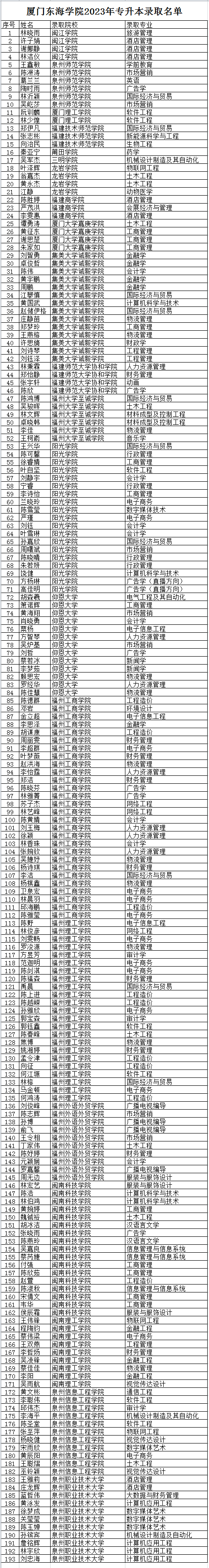 在2023年福建省普通高校专升本统一招生考试中,必赢官网共有193名应届毕业生分别被福建省内相关本科院校录取。