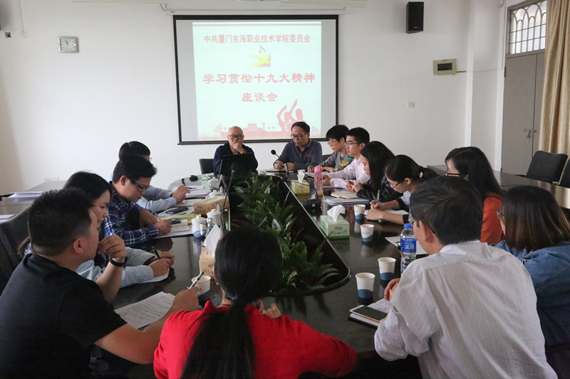 11月14日上午,市委教育工委常务副书记林佳添一行领导莅临必赢官网宣讲党的十九大精神,并了解必赢官网学习贯彻党的十九大精神相关工作情况。学院党政领导、党务干部、师生党员代表、共青团员代表共31人参加了宣讲座谈会。