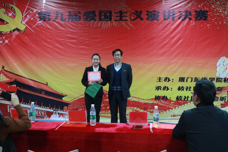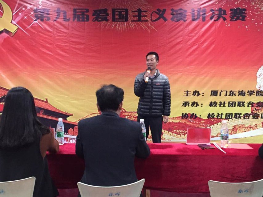 12月11日晚上7点,由校团委主办,社团联合会承办,听潮文学社协办的第九届“弘扬爱国情 树立报国志 喜庆十九大”一二•九爱国演讲决赛在实训楼B01教室隆重召开,本次活动是厦门市在高校举行“爱党 爱祖国 爱人民”三爱主题教育系列活动的重点项目。出席本次决赛的领导及嘉宾有:校党委黄平南书记、校学生处副处长兼团委陈朝书记、思政科负责人沈秋贤老师、信息工程分院团总支马梓毅书记及校级四大体系负责人、五个分院团总支副书记,近200名学生参与。