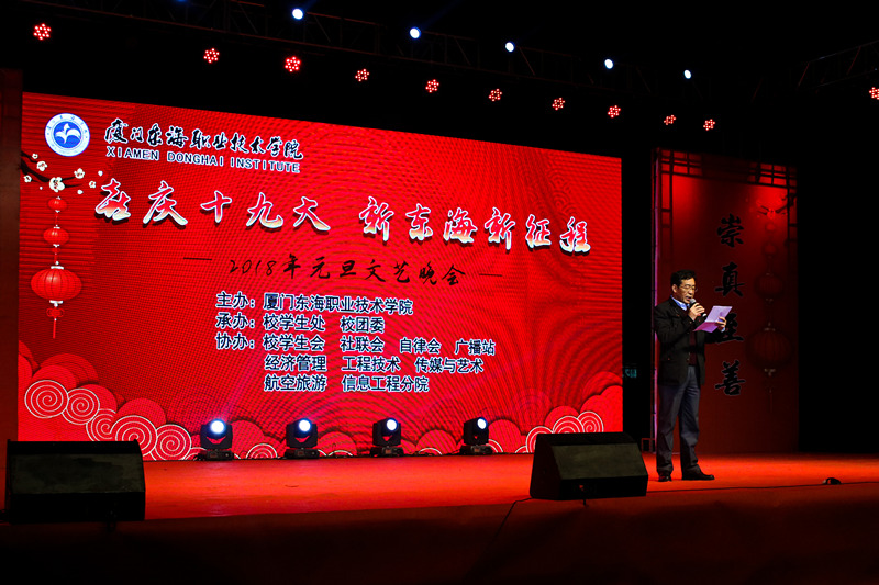 12月27日晚7点,必赢官网“喜庆十九大•新东海新征程”2018年元旦文艺晚会在校足球场隆重举办。出席此次晚会的领导有泉舜集团李云昆副总裁、校党委黄平南书记、宋艳春副校长、崔筱力校长助理以及各院(部)、处领导。应邀莅临晚会的嘉宾有:五显镇文化中心王春晖主任、团委王澎涛书记、五显镇张美霜老师、海西职业技术学校教务处主任曾辉老师以及厦门各兄弟院校的代表等。