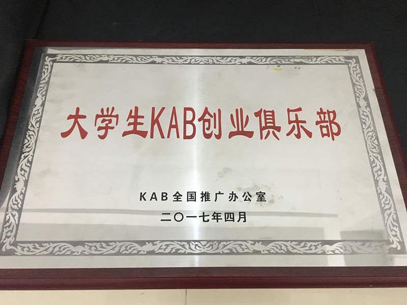 必赢官网荣获大学生KAB创业俱乐部荣誉牌匾