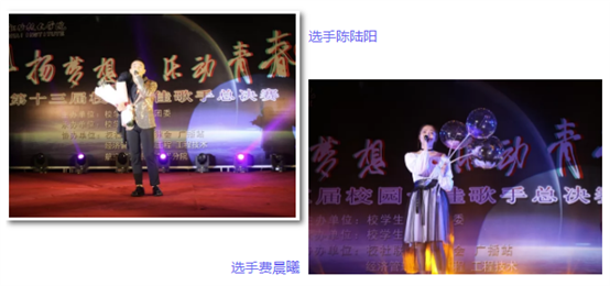 经过近一个月的层层选拔,共有12名选手登上了决赛的舞台。选手们怀揣着激情与梦想,用他们美妙的歌声感染着观众的心灵。在烟枪乐队演唱完歌曲《男孩》之后,比赛拉开序幕。开场第一位选手蔡沛烁凭借一首《千千阙歌》深得观众和评委的喜爱,紧接着王可欣同学安静的《Can’t take my eyes off you》、卢媛同学激昂的《追梦赤子心》、余洁琳同学张扬的《易燃易爆炸》、陈少聪深情的《爱如潮水》陆续亮相,民谣歌手石达文献上了一首触动人心的《一生所爱》,让观众犹如身临其境般步入歌曲中的唯美场景。随后街舞协会带来的街舞《Dancer party》更是引爆全场。