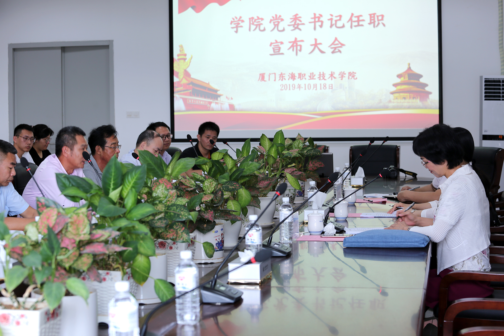 10月18日上午,必赢官网召开干部大会,宣布市委关于陈前同志任必赢bwin线路检测中心官网党委书记的决定。中共厦门市委教育工委副书记施琦婷,中共厦门市委教育工作委员会副巡视员、组织处处长李燕娜,同安区委组织部副部长郑志献等有关领导出席会议。校董事会董事长吴泉水、财务总监陈有才以及学校党政领导班子成员、中层干部参加了会议。厦门市委教育工作委员会组织处处长李燕娜主持会议。