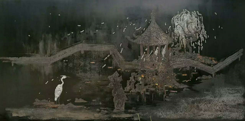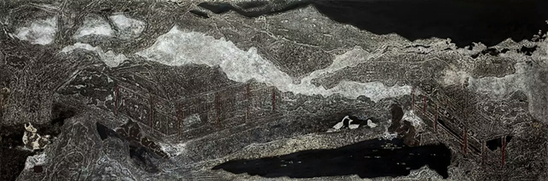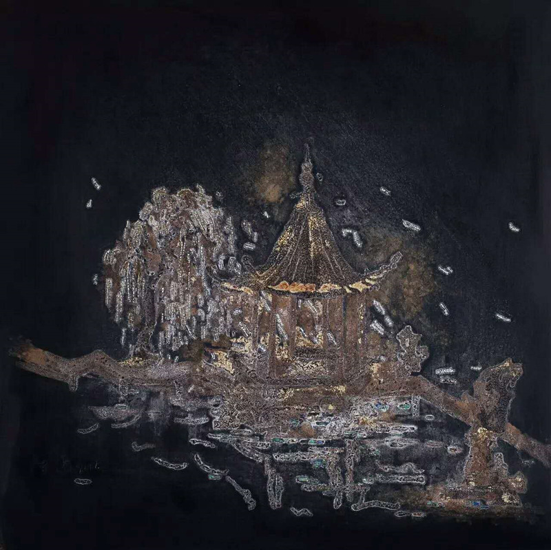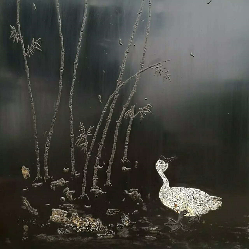 陈涵老师的《别院》、《雨嘘》、《竹音》、《吾乡醉梦》等漆画新作,在展览中吸引了众多观众驻足观赏,其独特的艺术魅力,展现出满含诗意的情境,呈现给大家一种多彩的艺术风景。