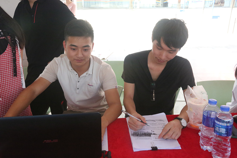 炎炎烈日下,迎新工作如火如荼,到处都是忙碌的身影,迎新工作者们早已无暇顾及汗流浃背的辛苦。不断前来报道的新生在志愿者们热情的引导和各专业学长学姐的悉心陪同下,顺利完成报道工作。迎新工作者们亲切的待人态度和高效的办事效率,很快与新生及家长建立了良好的互动,让新同学能感受到学院对他们“亲人般”的关怀。