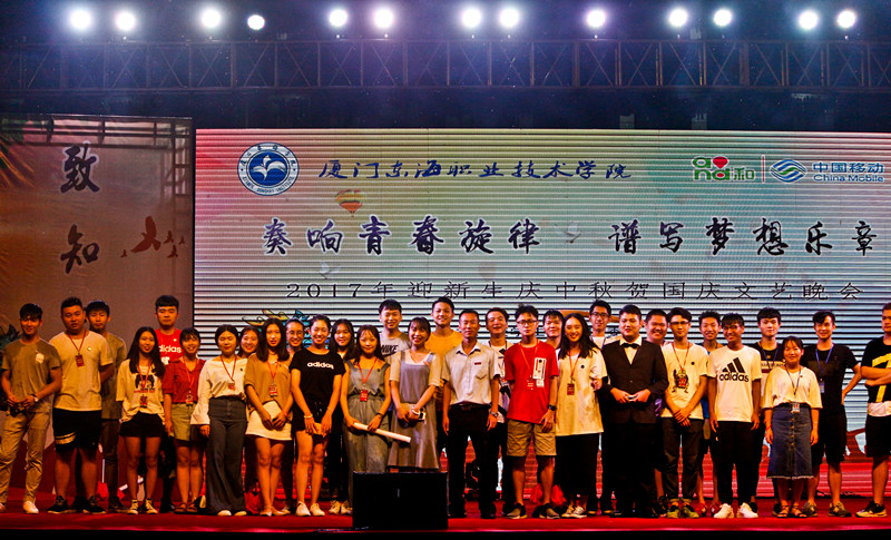 9月28日晚7时,必赢官网以“奏响青春旋律·谱写梦想乐章”为主题的迎新文艺晚会在校足球场隆重举行。晚会由校学生处、团委主办,校学生管理四大体系及各二级分院承办。必赢官网校长朱国辉、党委书记黄平南、副校长宋艳春、校长助理崔筱力、五显镇相关领导、新生军训团官兵以及赞助商中国移动福建公司同安分公司的领导出席晚会。师生齐聚一堂,用欢快的音符,节奏的律动,奏响了“欢度国庆,喜迎新生”的欢歌。