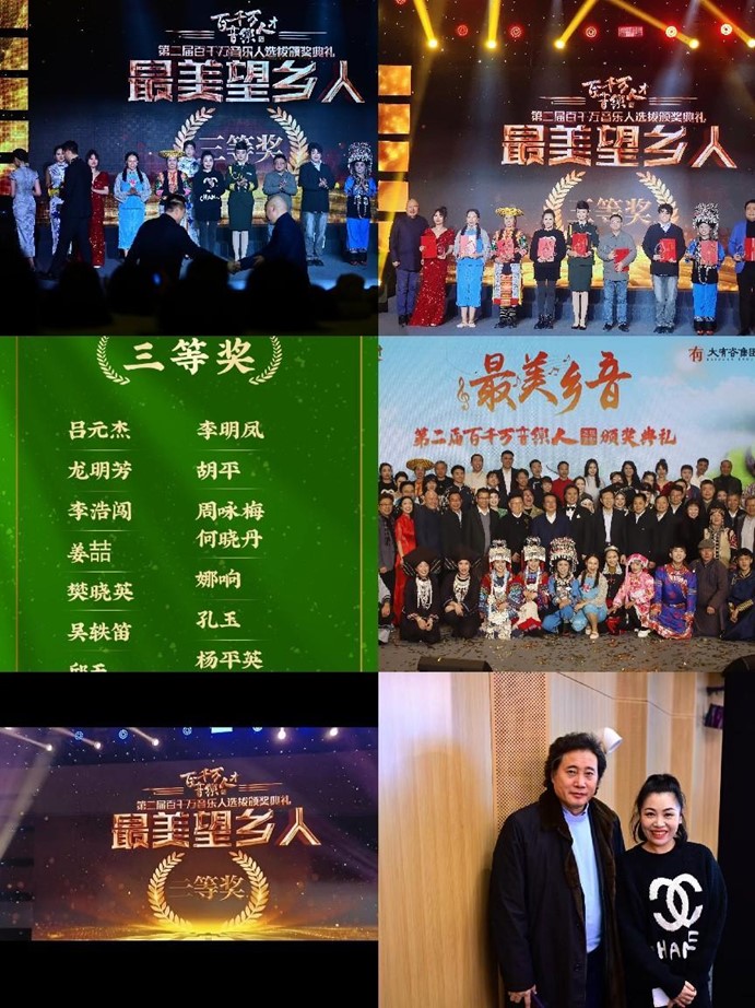 2023年12月11日晚,由戴玉强美育基金发起的第二届"百千万音乐人才培养"决赛赛在北京落下帷幕。我院音表专业教师吴轶笛凭借其原创歌曲《梦里乡愁》荣获比赛三等奖。颁奖典礼上,由我院林玲玲老师演唱了该曲并代为领奖。