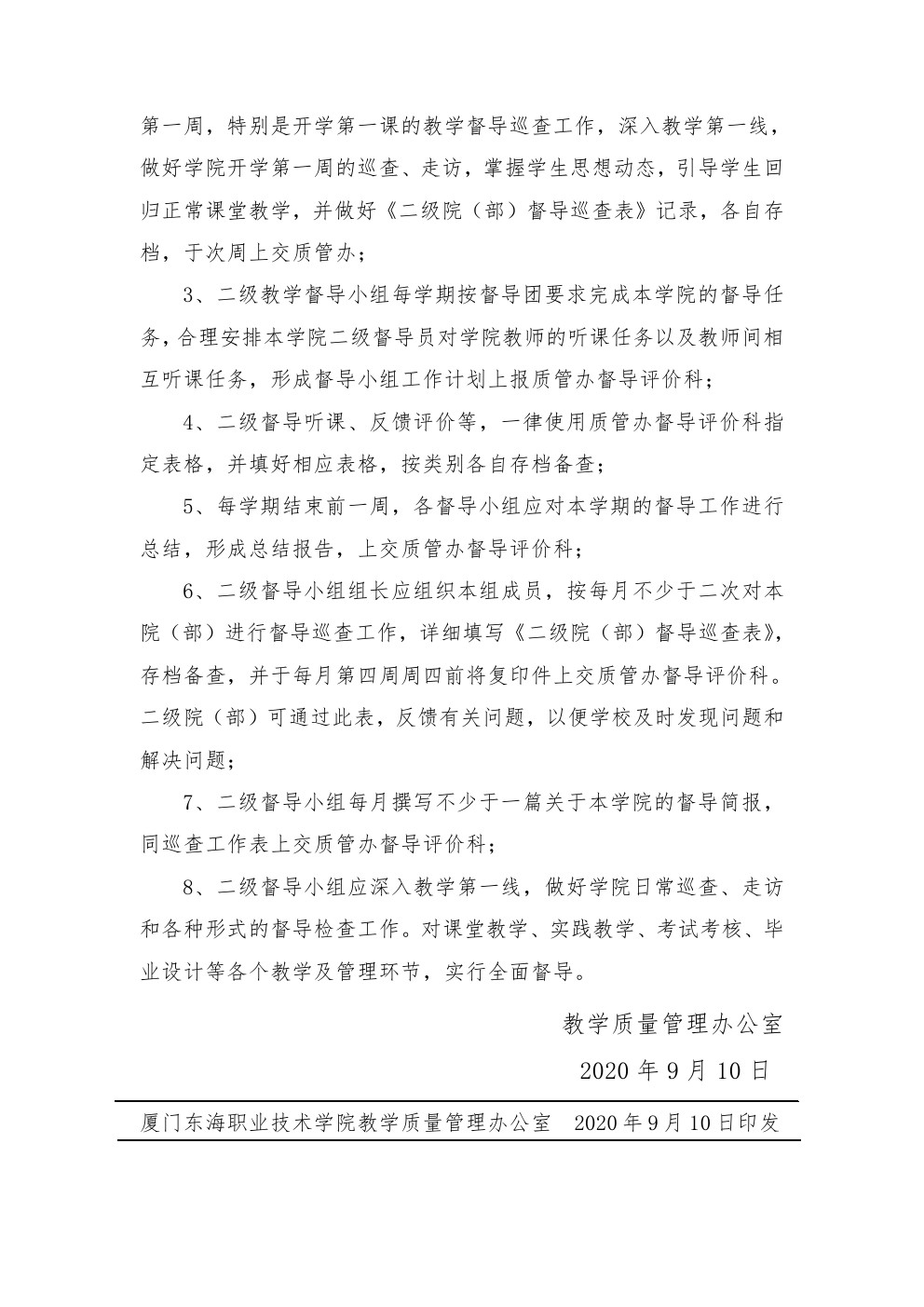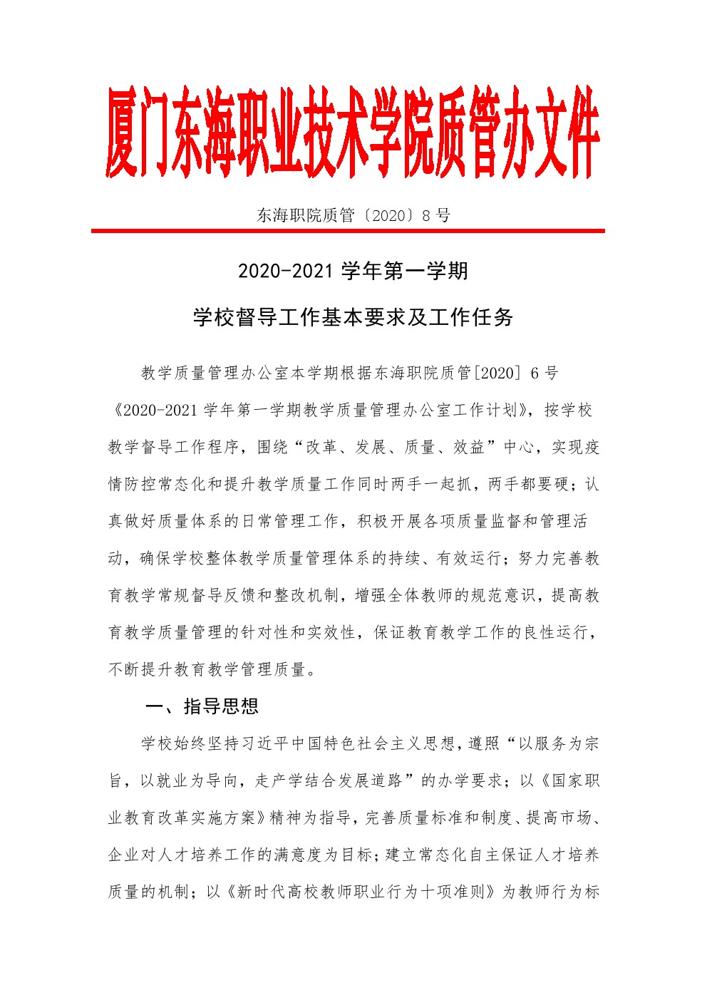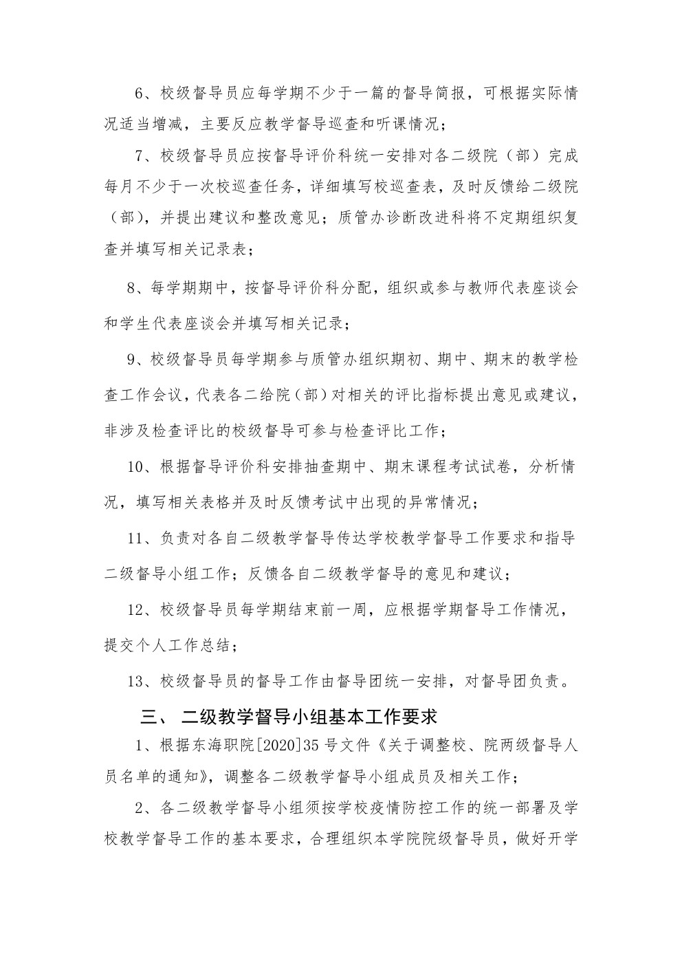 东海职院质管〔2020〕8号 2020-2021学年第一学期学校督导工作基本要求及工作任务