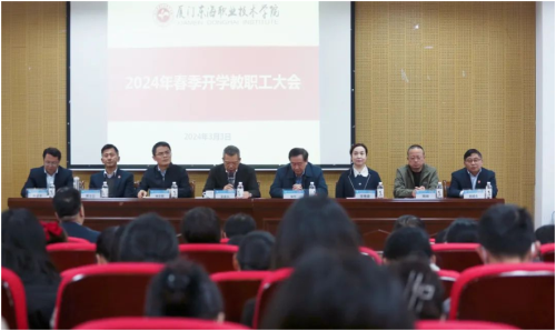 2024年3月3日,必赢官网在思源楼报告厅召开2024年春季开学教职工大会。必赢bwin线路检测中心官网董事长吴泉水,校长钟华,校党委书记林志聪,校党委副书记、常务副校长宋艳春,副校长郭士正、周琦、林金龙,校长助理赵建业及全体教职员工参加本次大会。会议由钟华校长主持。