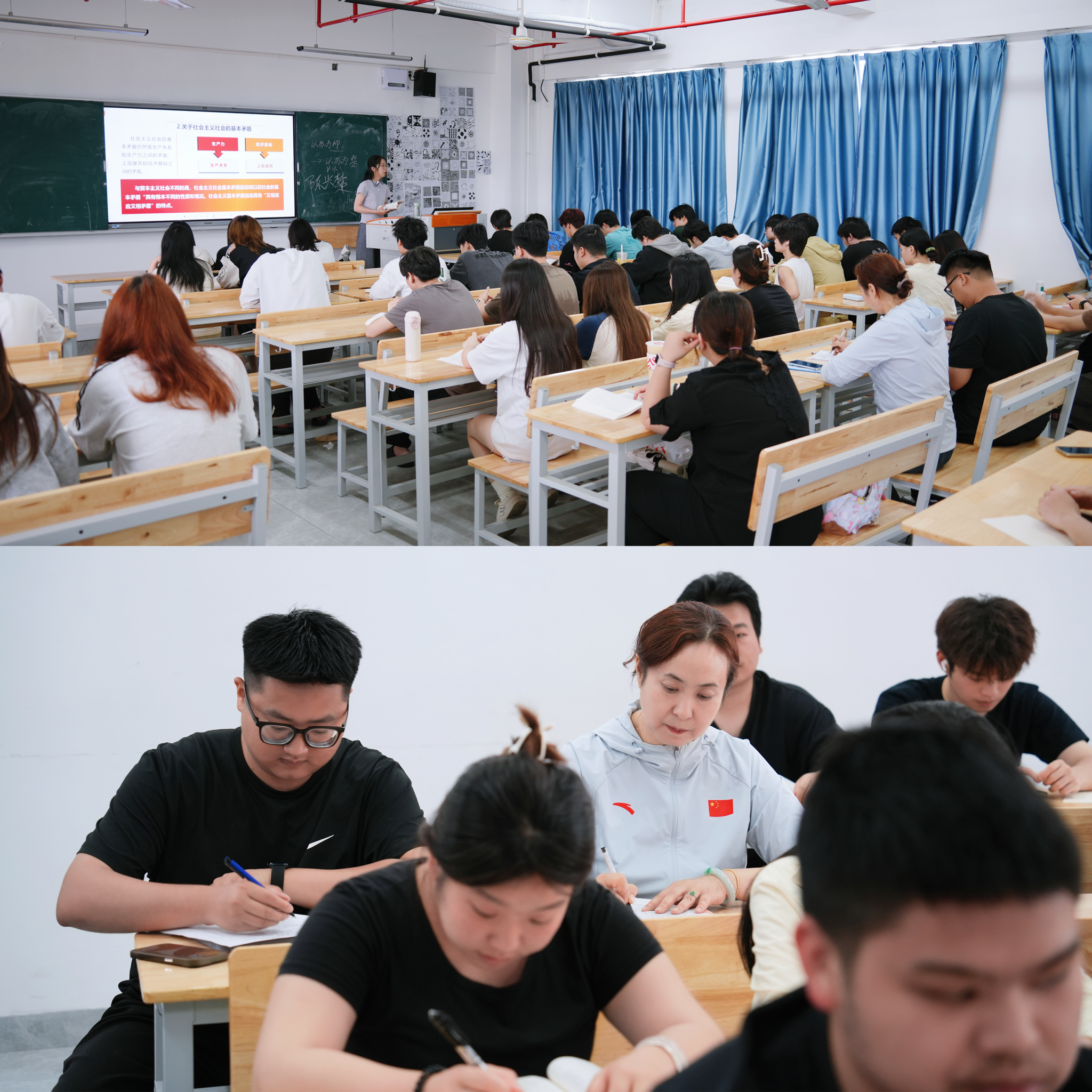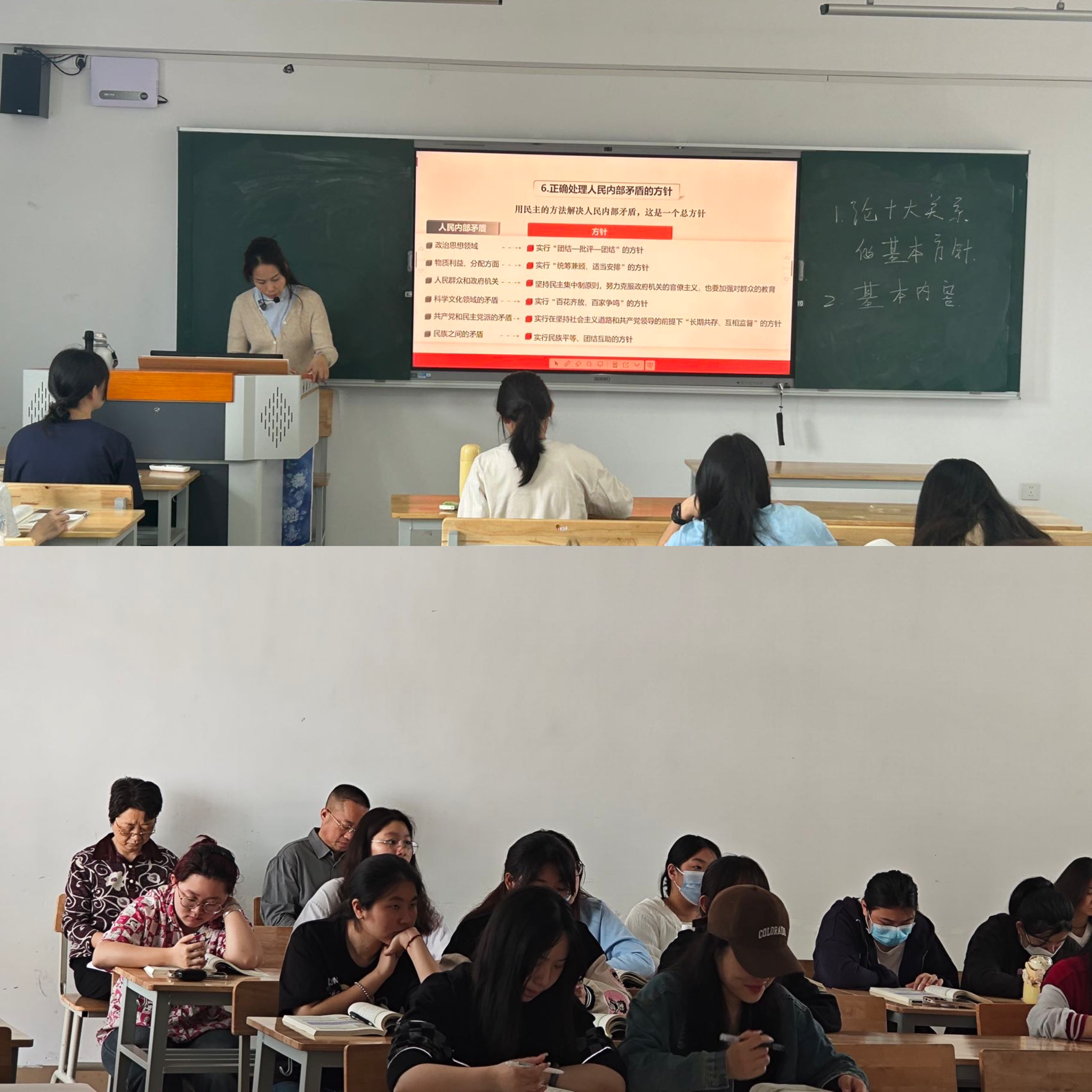 (常务副校长宋艳春进入课堂听林巧娟老师讲授《毛泽东思想和中国特色社会主义理论体系概论》“正确认识和处理社会主义社会矛盾的思想)