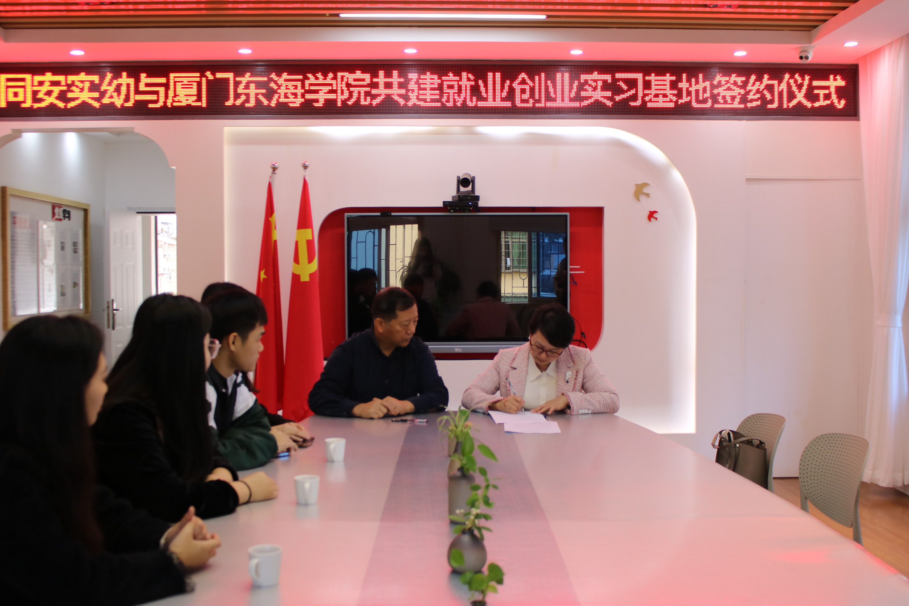 为进一步加强校企合作,增强我院的实习实践基地力量,促进复合型人才培养,2023年12月4日上午,教师教育学院院长施茂枝教授、院长助理曾丽燕老师、毕业班辅导员陈锖锖老师、陈麒老师一行赴同安区实验幼儿园参加双方共建签约揭牌仪式。同安区实验幼儿园园长颜毅真、副园长陈淑媚等多名干部出席仪式。 随后,教师教育学院一行走访在该园实习的学生,详细倾听了学生在实习过程中遇到的难题。毕业班辅导员在走访过程中详细询问了学生的实习状况,认真听取了同学们的实习体会,对实习学生的实习内容和实习收获等情况进行了深入了解。